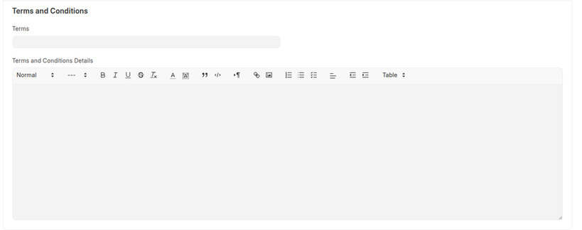 Terms: Optional, we can select the terms and conditions from terms and conditions template.