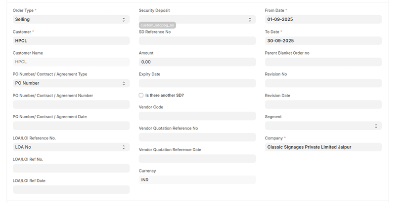 *It will only be visible when the order type is Purchasing. Currently we are not using blanket order against purchasing.