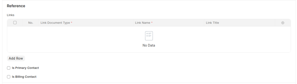 Links : Child-table, we can link all contact references here: for ex we can link multiple supplier, customer here.
