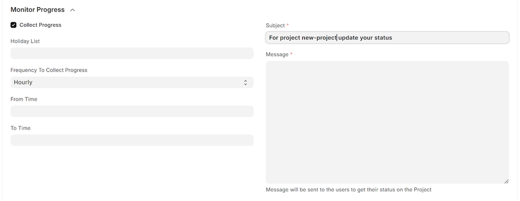 Collect Progress: Checkbox, on select of this it will display all related fields.