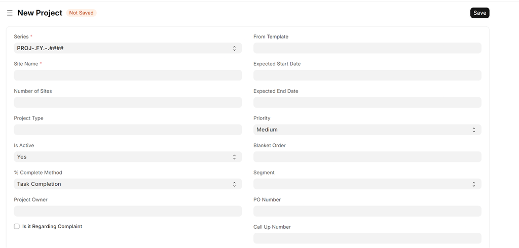 Sales Order: If projects are created through sales order, then sales order no are entered here. But in our organization we create sales orders from projects, so we don't use this field.