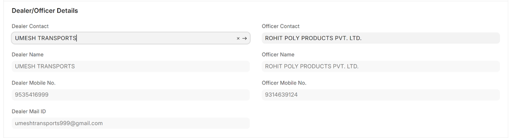 Dealer Contact: Please select dealer contact from contact master. Otherwise create a new contact.